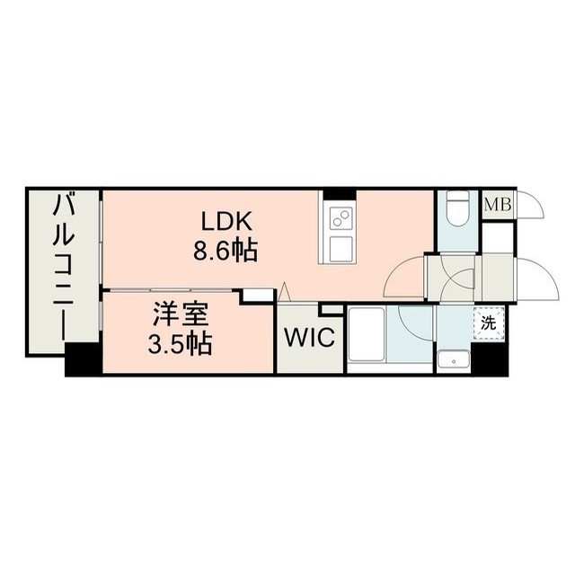 | 間取 | 1LDK ( LDK 8.6帖 / 洋 3.5帖 ) |