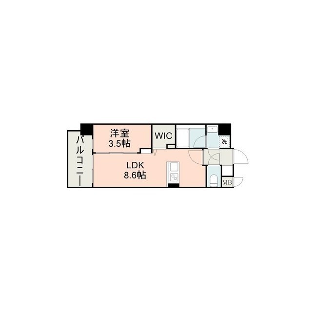 | 間取 | 1LDK ( LDK 8.6帖 / 洋 3.5帖 ) |