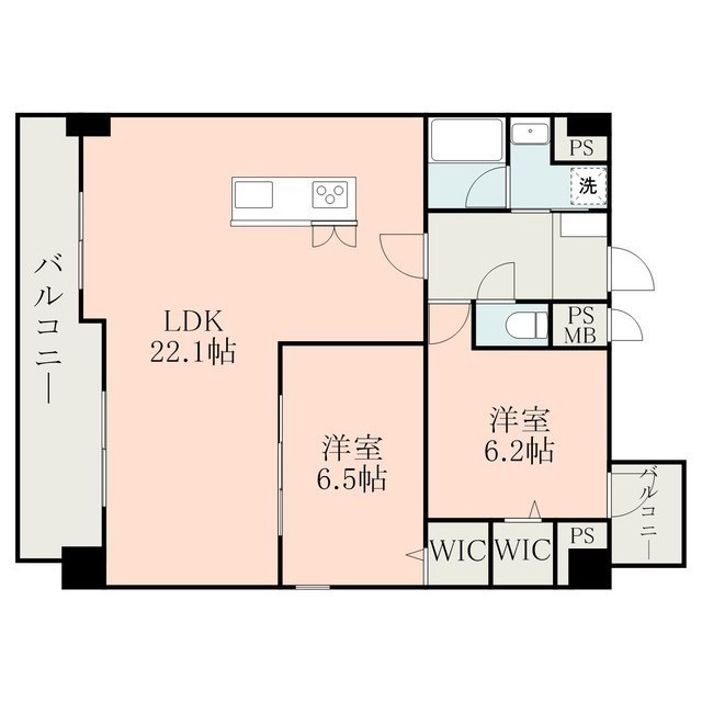 | 間取 | 2LDK ( LDK 22.1帖 / 洋 6.5帖 / 洋 6.2帖 ) |