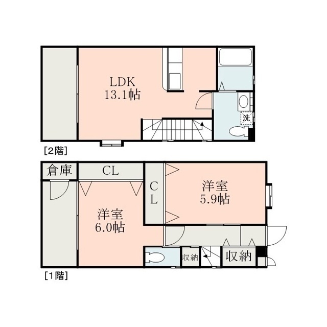 | 間取 | 2LDK ( LDK 13.1帖 / 洋 6帖 / 洋 5.9帖 ) |