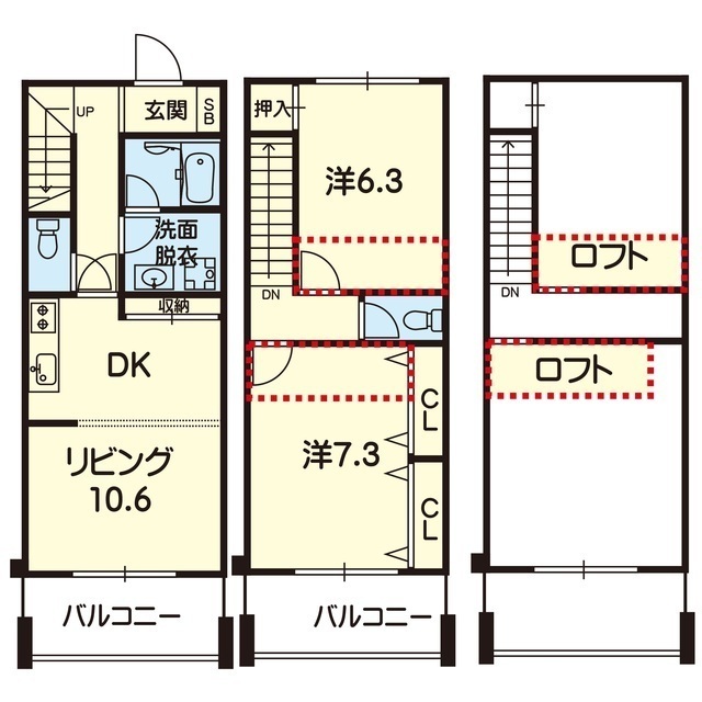 | 間取 | 2LDK ( LDK 10.6帖 / 洋 7.3帖 ) |