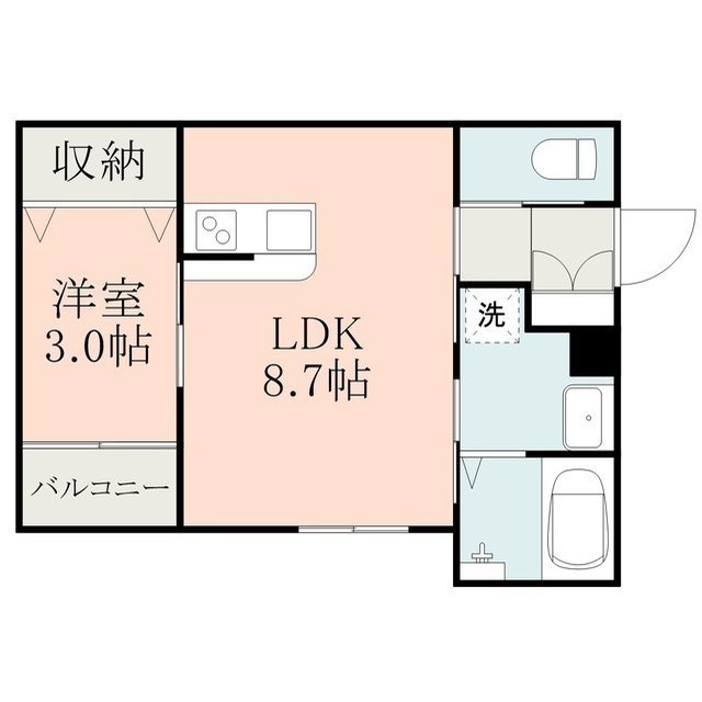 | 間取 | 1LDK ( LDK 8.7帖 / 洋 3帖 ) |