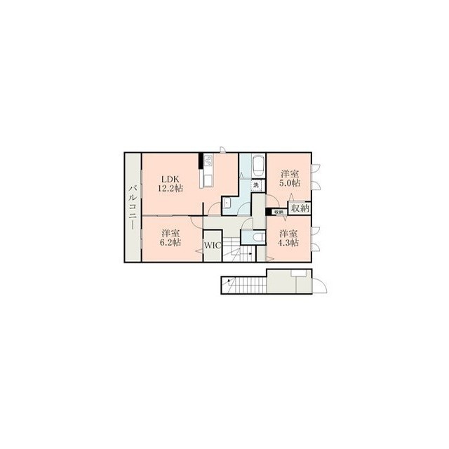 | 間取 | 3LDK ( LDK 12.2帖 / 洋 6.2帖 / 洋 5帖 / 洋 4.3帖 ) |