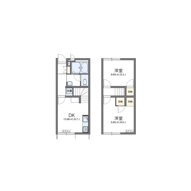 | 間取 | 2DK ( DK 6.7帖 / 洋 6帖 / 洋 5.3帖 ) |