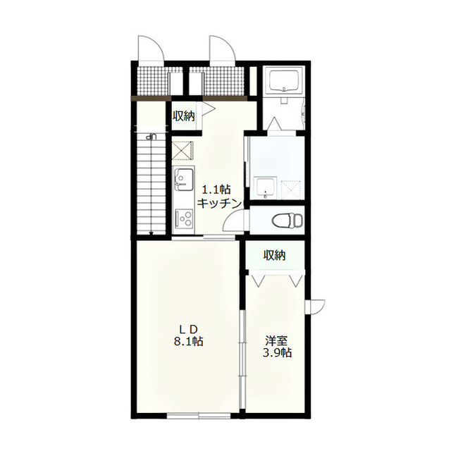 | 間取 | 1LDK ( LD 8.1帖 / K 1.1帖 / 洋 3.9帖 ) |