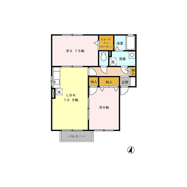 | 間取 | 2LDK ( LDK 10.5帖 / 洋 6.75帖 / 洋 6帖 ) |