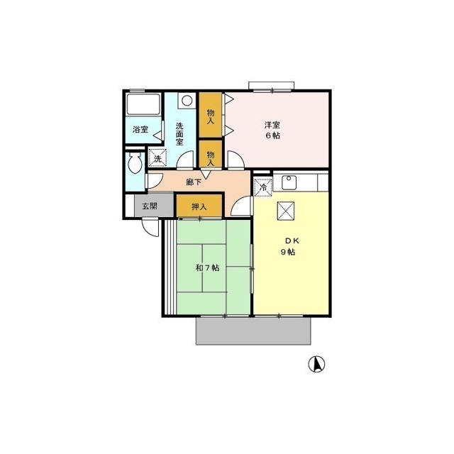 | 間取 | 2DK ( DK 9帖 / 和 7帖 / 洋 6帖 ) |