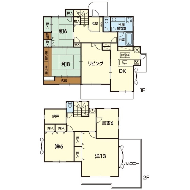 | 間取 | 5SLDK ( LDK 10.7帖 / 洋 10.2帖 / 和 8帖 / 和 6帖 / S 6帖 / 洋 13帖 / 洋 6帖 ) |