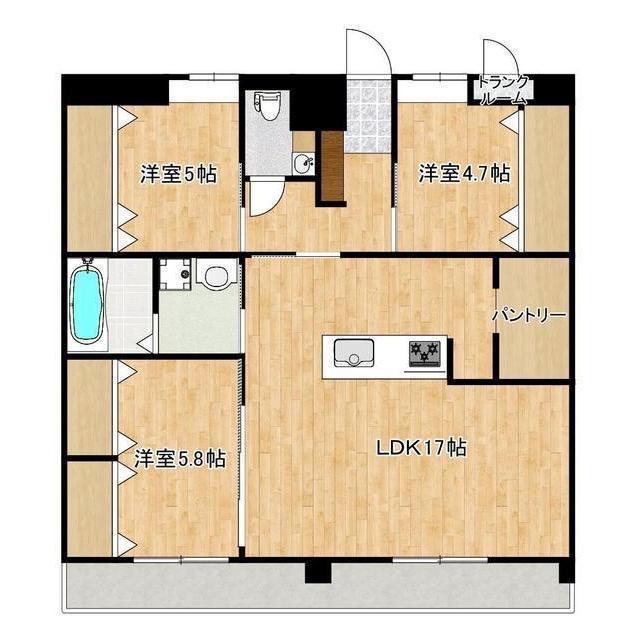 | 間取 | 3LDK ( LDK 17帖 / 洋 5.8帖 / 洋 5帖 / 洋 4.7帖 ) |