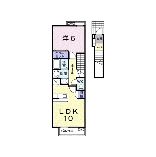 | 間取 | 1LDK ( LDK 10帖 / 洋 6帖 ) |
