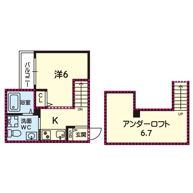 | 間取 | 1K+ロフト ( K 3帖 / 洋 6帖 / ロフト 6.7帖 ) |