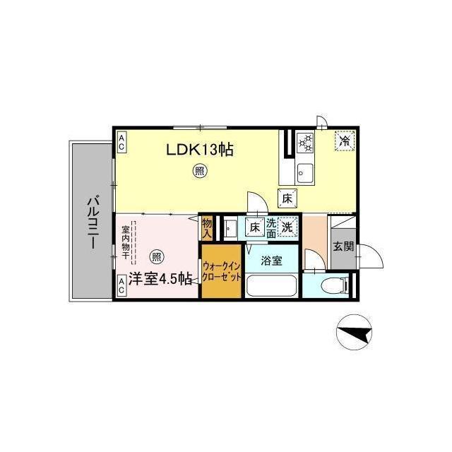 | 間取 | 1LDK ( LDK 13帖 / 洋 4.5帖 ) |