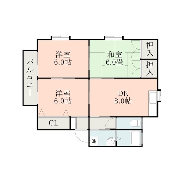| 間取 | 3DK ( DK 8帖 / 洋 6帖 / 洋 6帖 / 和 6帖 ) |