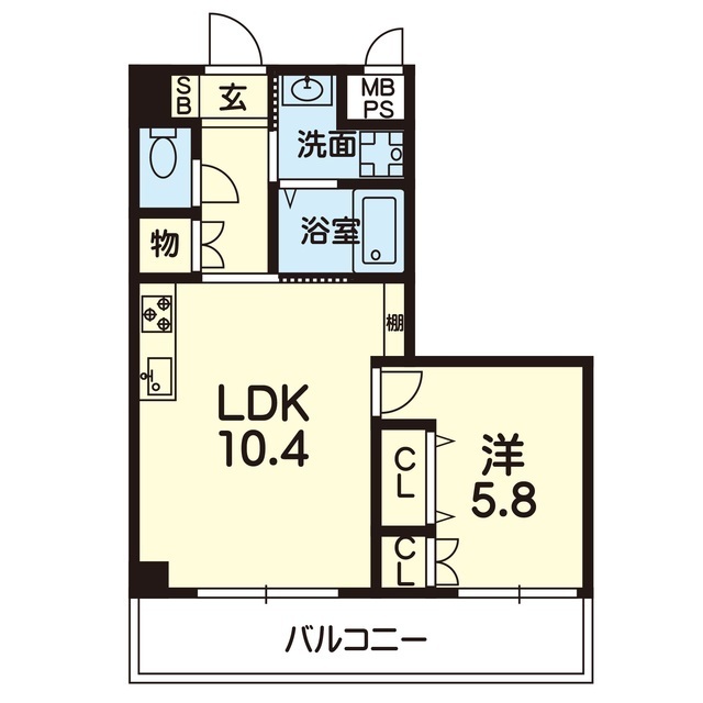 | 間取 | 1LDK ( LDK 10.4帖 / 洋 5.8帖 ) |