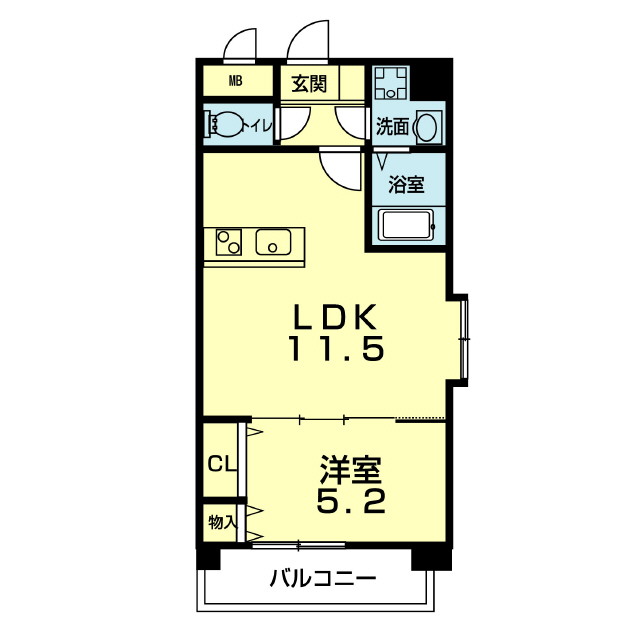 | 間取 | 1LDK ( LDK 11.5帖 / 洋 5.2帖 ) |