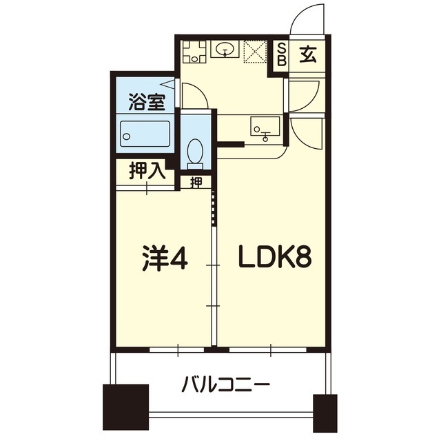 | 間取 | 1LDK ( LDK 8帖 / 洋 4帖 ) |