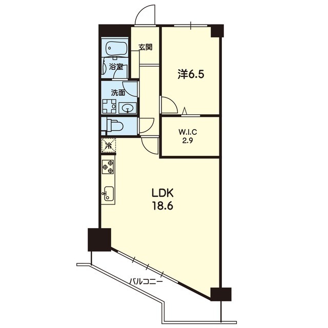 | 間取 | 1LDK ( LDK 18.6帖 / 洋 6.5帖 ) |