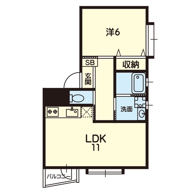 | 間取 | 1LDK ( LDK 11帖 / 洋 6帖 ) |
