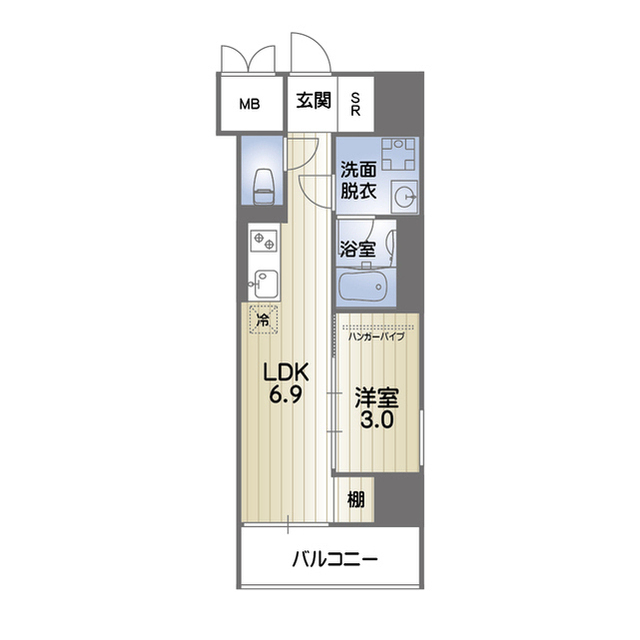 | 間取 | 1LDK ( LDK 6.9帖 / 洋 3帖 ) |