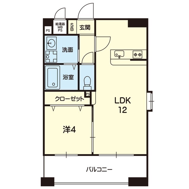 | 間取 | 1LDK ( LDK 12帖 / 洋 4帖 ) |
