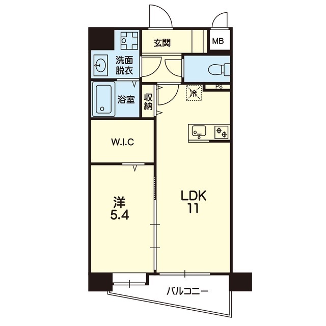 | 間取 | 1LDK ( LDK 11帖 / 洋 5.4帖 ) |