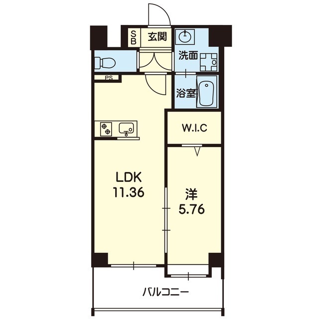 | 間取 | 1LDK ( LDK 11.36帖 / 洋 5.76帖 ) |