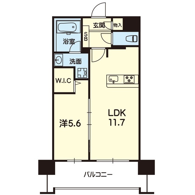 | 間取 | 1LDK ( LDK 11.7帖 / 洋 5.6帖 ) |