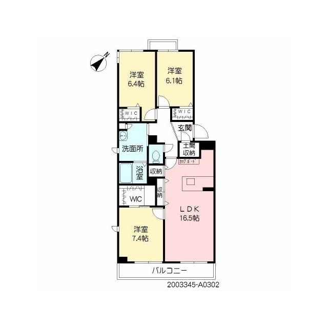 | 間取 | 3LDK ( LDK 16.5帖 / 洋 7.4帖 / 洋 6.4帖 / 洋 6.1帖 ) |