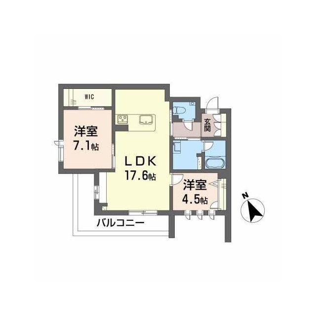| 間取 | 2LDK ( LDK 17.6帖 / 洋 7.1帖 / 洋 4.5帖 ) |