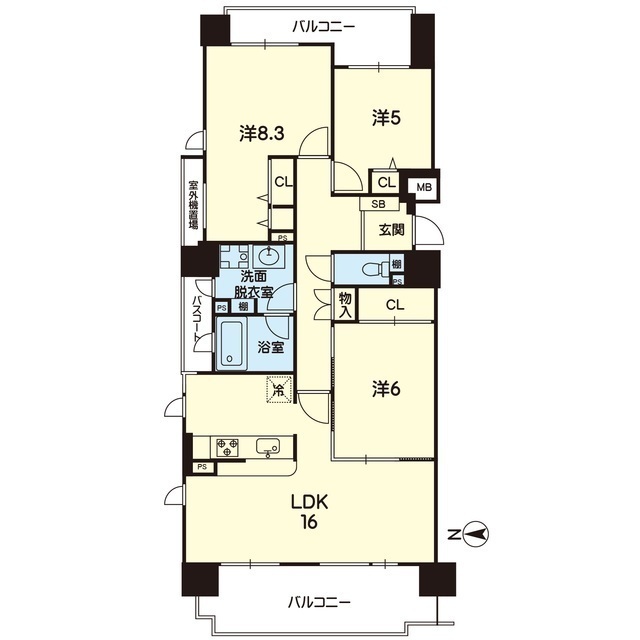 | 間取 | 3LDK ( LDK 16帖 / 洋 8.3帖 / 洋 6帖 / 洋 5帖 ) |