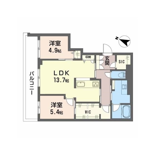 | 間取 | 2LDK ( LDK 13.7帖 / 洋 5.4帖 / 洋 4.9帖 ) |