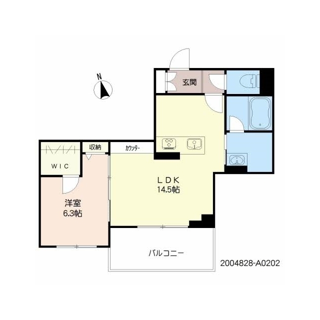 間取 | 1LDK ( LDK 14.5帖 / 洋 6.3帖 ) |
