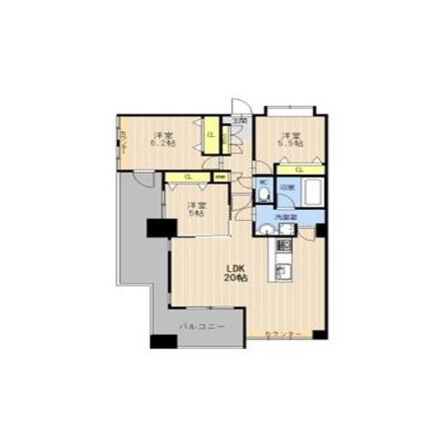 | 間取 | 3LDK ( LDK 20帖 / 洋 6.2帖 / 洋 5.5帖 / 洋 5帖 ) |