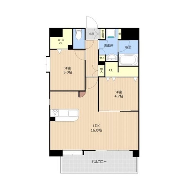 | 間取 | 2LDK ( LDK 16帖 / 洋 5帖 / 洋 4.7帖 ) |