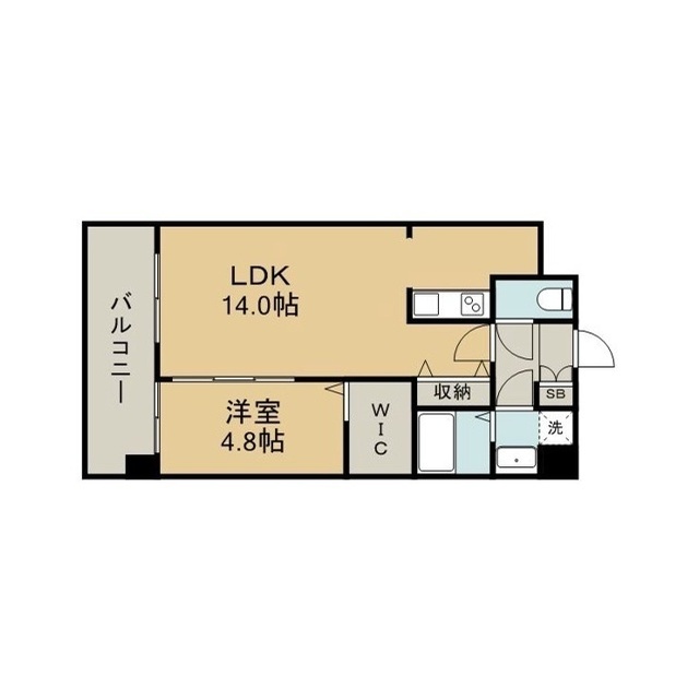 | 間取 | 1LDK ( LDK 14帖 / 洋 4.8帖 ) |