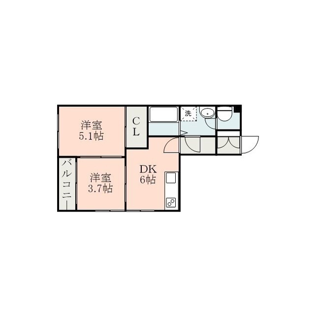 | 間取 | 2DK ( DK 6帖 / 洋 5.1帖 / 洋 3.7帖 ) |