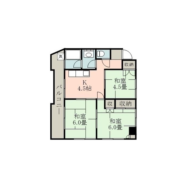 | 間取 | 3K ( K 4.5帖 / 和 6帖 / 和 6帖 / 和 4.5帖 ) |