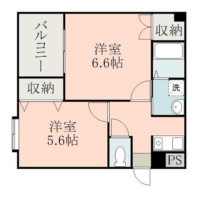 | 間取 | 2K ( 洋 6.6帖 / 洋 5.6帖 ) |