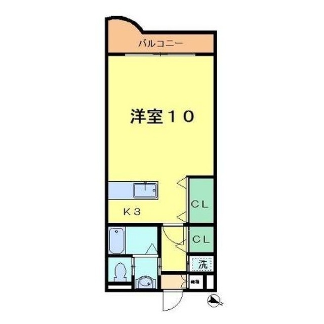 | 間取 | 1K ( K 3帖 / 洋 10帖 ) |