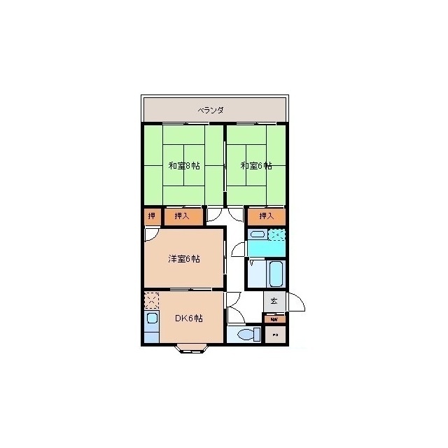 | 間取 | 3DK ( DK 6帖 / 和 8帖 / 和 6帖 / 洋 6帖 ) |