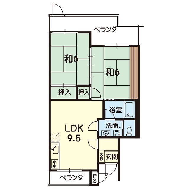 | 間取 | 2LDK ( LDK 9.5帖 / 和 6帖 / 和 6帖 ) |