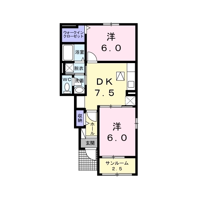 | 間取 | 2DK ( DK 7.5帖 / 洋 6帖 / 洋 6帖 ) |