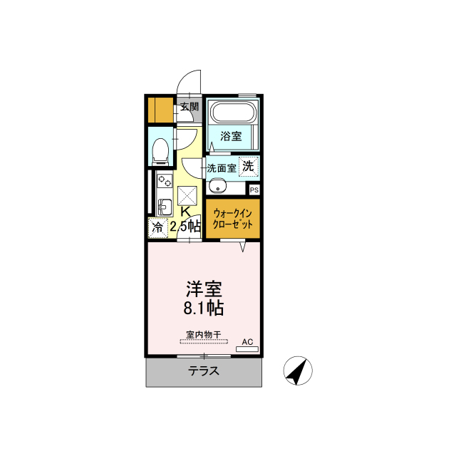 間取 | 1K ( K 2.5帖 / 洋 8.1帖 ) |
