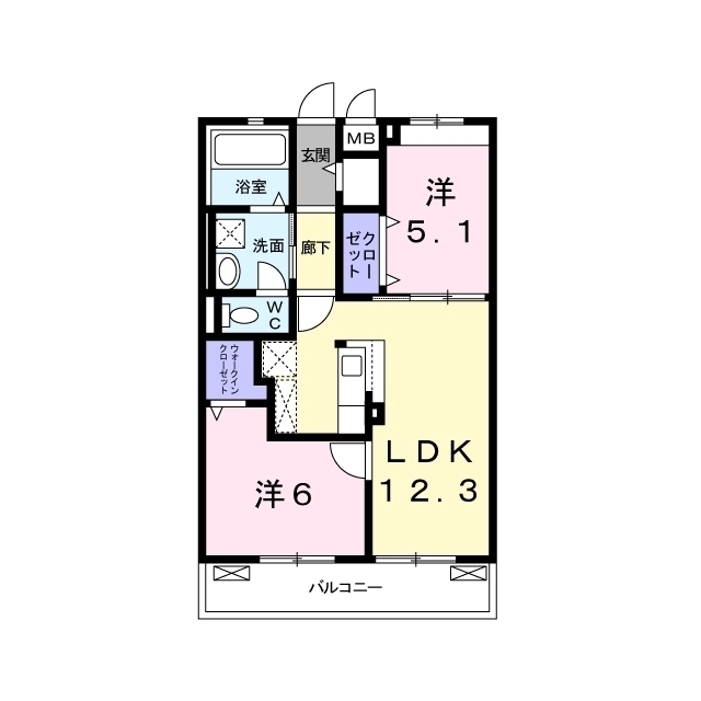 | 間取 | 2LDK ( LDK 12.3帖 / 洋 6帖 / 洋 5.1帖 ) |