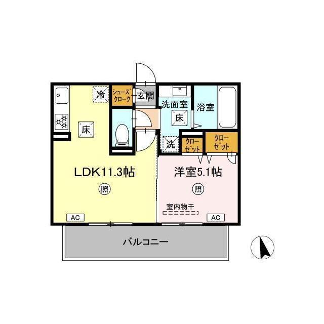 間取 | 1LDK ( LDK 11.3帖 / 洋 5.1帖 ) |