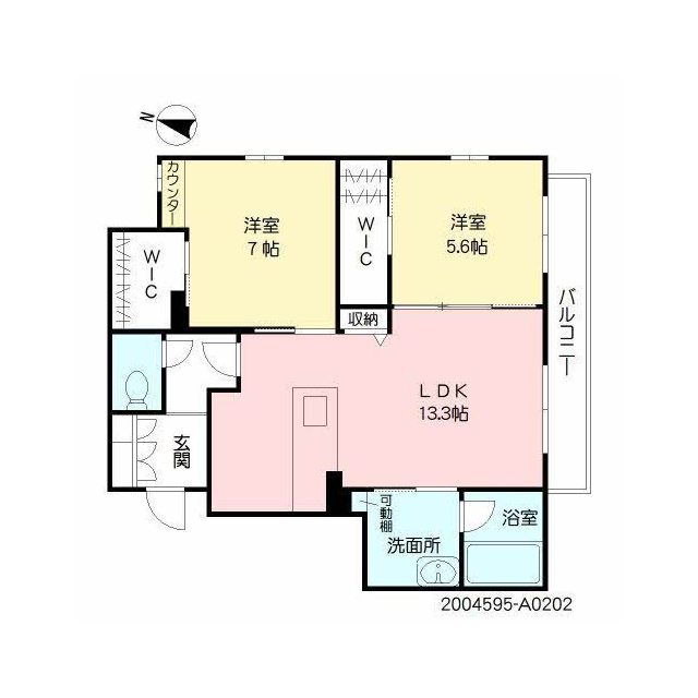 | 間取 | 2LDK ( LDK 13.3帖 / 洋 7帖 / 洋 5.6帖 ) |