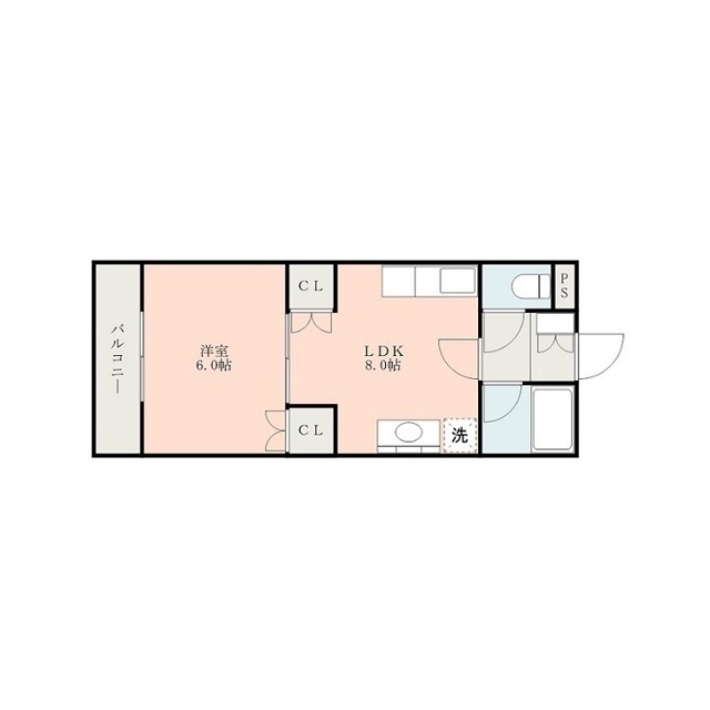 | 間取 | 1LDK ( LDK 8帖 / 洋 6帖 ) |