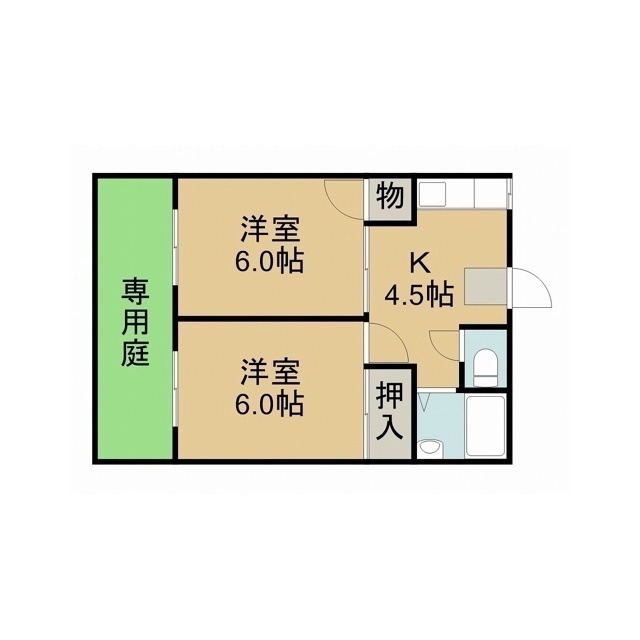 | 間取 | 2K ( K 4.5帖 / 洋 6帖 / 洋 6帖 ) |