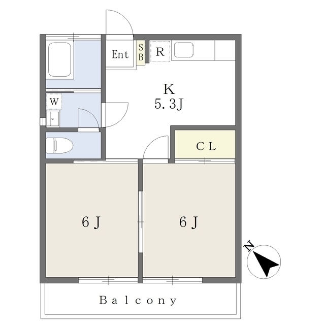 | 間取 | 2DK ( DK 5.6帖 / 洋 6帖 / 洋 6帖 ) |