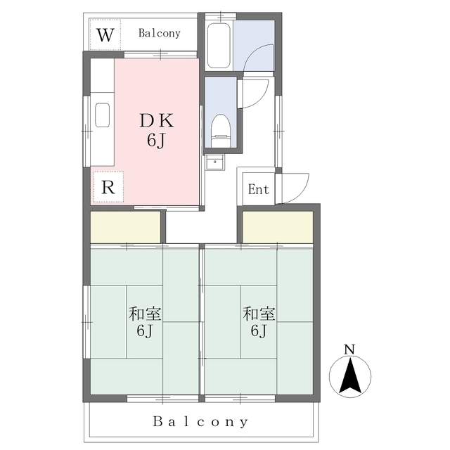 | 間取 | 2LDK ( DK 6帖 / 和 6帖 / 和 6帖 ) |